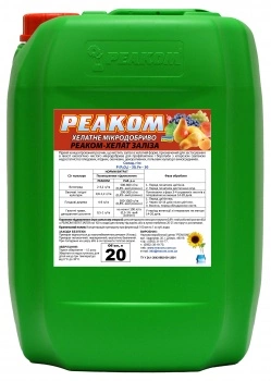 Реаком-хелат заліза - є рідким концентрованим розчином, що містить залізо в хелатній формі, призначений для застосування в якості екологічно чистого мікродобрива для профілактики та боротьби з хлорозом (залізною недостатністю) у плодових, ягідних, овочевих, декоративних, польових культур і виноградників.